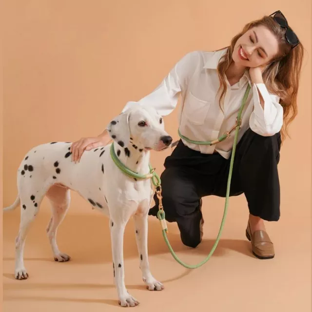 This leash is built for small and medium dogs, including Bulldogs, Samoyeds, and other energetic companions. Its multifunction design allows you to use it as a hands-free cross-body leash, waist-hold leash, double-dog leash, collar-style P rope, or a classic lead. No matter the activity, it remains strong, elegant, and incredibly convenient.
