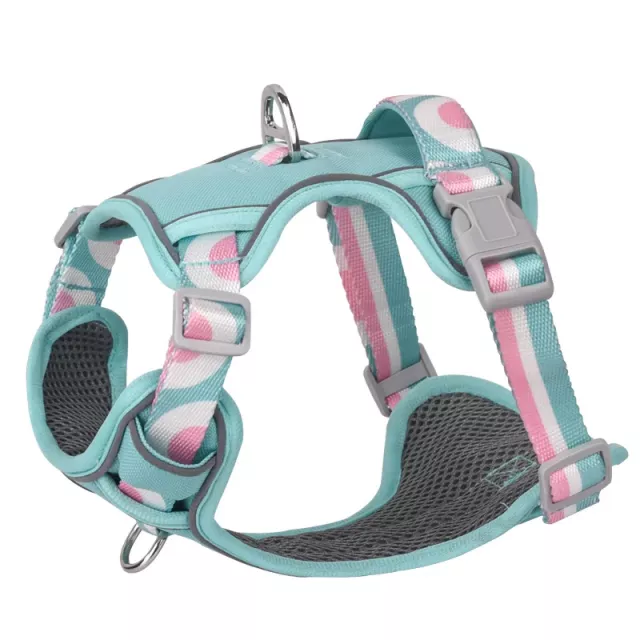 This harness comes with several essential features that make it stand out. Its fully adjustable design ensures a snug and comfortable fit, while the built-in reflective detailing increases visibility during low-light walks. Strong buckles keep everything securely in place, and the breathable material helps prevent overheating during warm-weather outings. These basic yet important features make this harness ideal for every season—summer, fall, winter, and spring.
