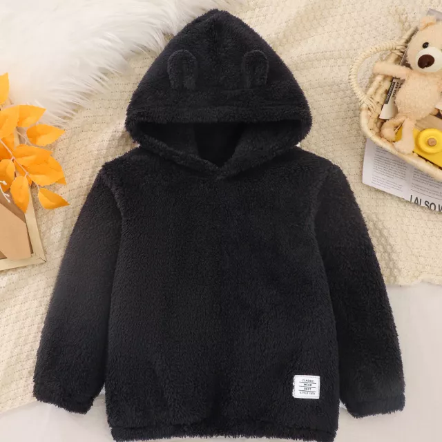 Cozy Black Plush Hooded Sweater with Bear Ears for Boys