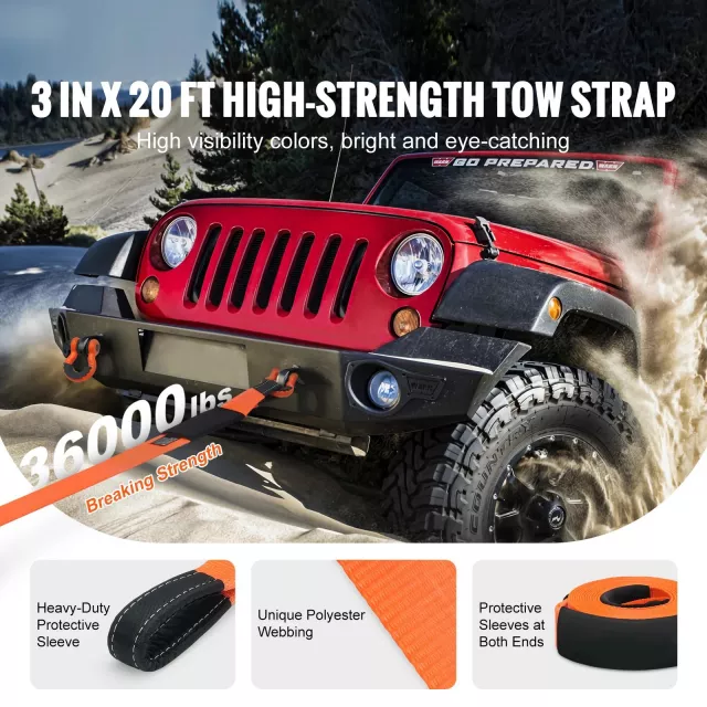 This tow strap doesn’t just get the job done—it delivers peace of mind. It offers exceptional reliability when you need it most, performing at its best during off-road adventures, camping trips, snow drives, and emergency roadside recoveries. With a high breaking strength of 36,000 lbs and a convenient 30 ft length, it’s built to recover vehicles of all kinds, from compact cars to heavy trucks and SUVs.