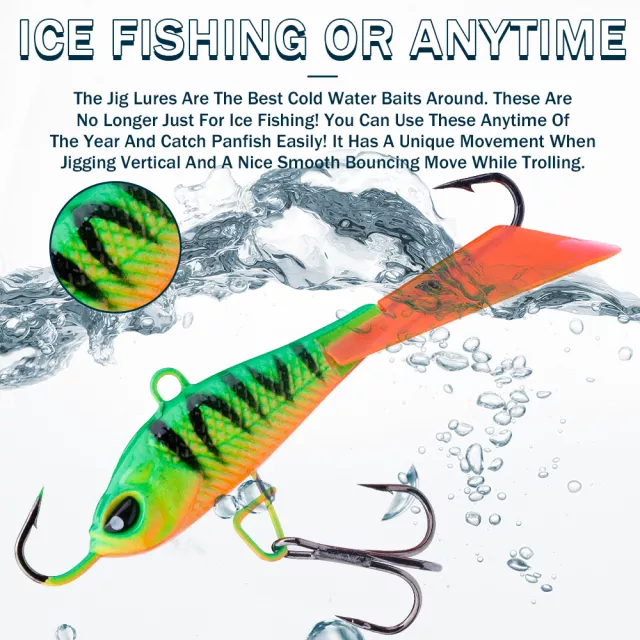 Upgrade your winter fishing game with this premium 5-piece Ice Fishing Jig Lure Kit designed to deliver powerful strikes in even the coldest conditions. These fast-sinking balancer lures drop quickly, swim naturally, and attract predator fish from impressive distances. Whether you’re targeting trout, bass, pike, carp, walleye, or panfish, this kit gives you everything you need to hook more fish with less effort.