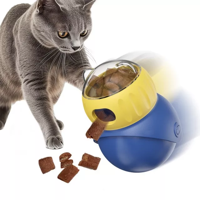Unlike basic bowls, this puzzle feeder combines mental stimulation and physical activity in one durable toy. The tumbler design makes it unpredictable and entertaining, encouraging problem-solving and IQ training. Your cat doesn’t just eat — they earn their reward through play. That’s what sets it apart from regular feeders.