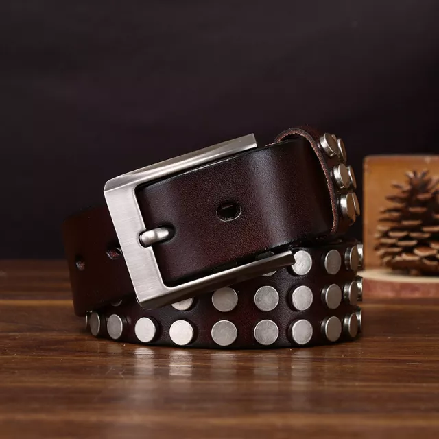 The edgy, strategically placed rivets are what set this belt apart. This isn’t just decorative; it’s a signature of punk and motorcycle culture. The cold, hard metal against the warm, aging leather creates a striking contrast that screams authenticity and attitude, making it a truly personalized, niche statement piece.
