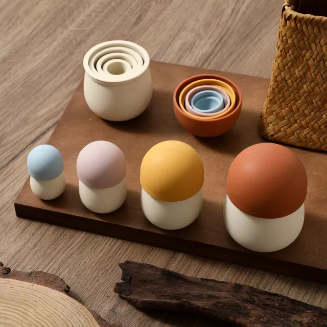This nesting toy encourages stacking, sorting, arranging, and imaginative storytelling. Its simple, open-ended design allows children of all ages to create their own play experience—whether they’re learning to match sizes, practicing motor skills, or inventing fun mushroom-themed adventures. Even adults can enjoy rearranging them as a cute home decoration or using them as unique photography props.