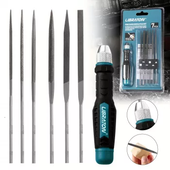 6-Piece Mini Needle File Set with Interchangeable Handle for Precision Crafting