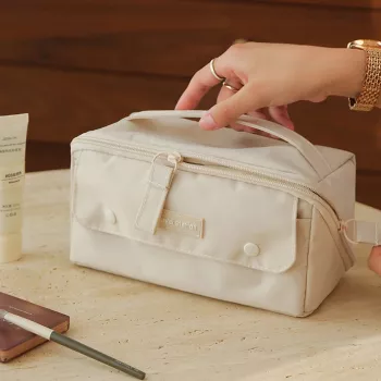 Compact Tofu Cube Makeup Bag – Portable Travel Cosmetic Organizer