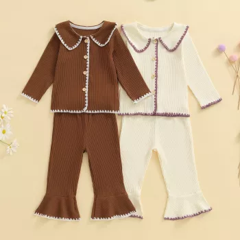 Toddler Girl Fall Outfit Set – Contrast Trim Top & Flare Pants 2-Piece