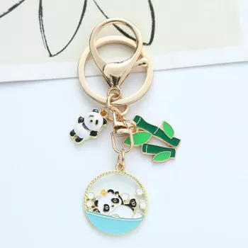 Cute Panda Bamboo Keychain – Cartoon Metal Bag Charm & Car Key Ring