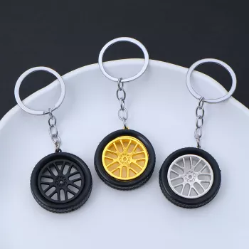 Racing Wheel Hub Keychain – Metal 3-Color Car Rim Key Ring