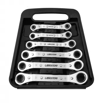 Offset Ratcheting Wrench Set with Organizer – 6-Piece SAE Equivalent