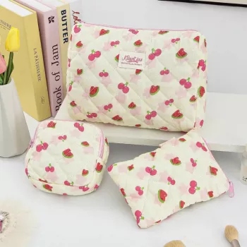 Watermelon & Cherry Quilted Makeup Bag – Portable Fresh-Style Cosmetic Case