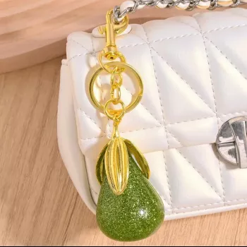 Trendy Glitter Crystal Pear Bag Charm Keychain