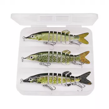 3-Piece Lifelike Pike Swimbait Set with Tackle Box