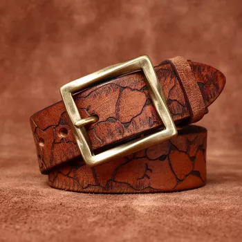Men’s 1.5 Inch Ice Cracked Leather Belt – Retro Style