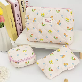 Floral Quilted Makeup Bag – Travel-Ready Cosmetic Organizer