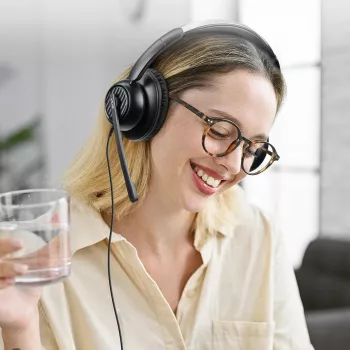 Wired Office Headset with Multi-Device Connectivity and Noise-Canceling Mic
