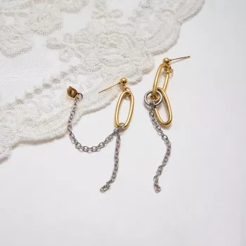 Stainless Steel Geometric Asymmetric Tassel Drop Earrings for Women