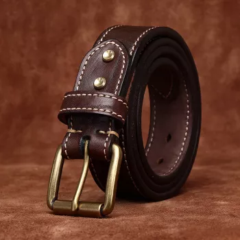 Men’s 1.5 Inch Genuine Leather Belt with Brass Buckle
