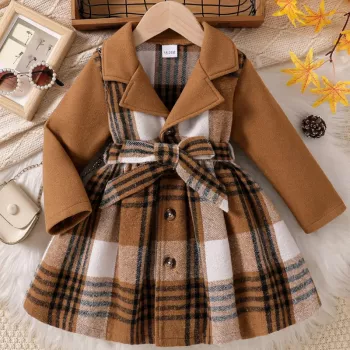 Plaid Woolen Trench Coat for Girls – Cozy Winter Fashion Jacket (1–6 Years)