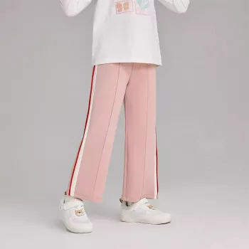 Girls Winter Cotton Straight Pants with Elastic Waist – Pink