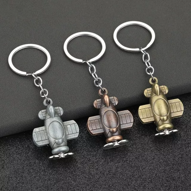 Retro Propeller Airplane Keychain – Metal Plane Charm with Spinning Propeller