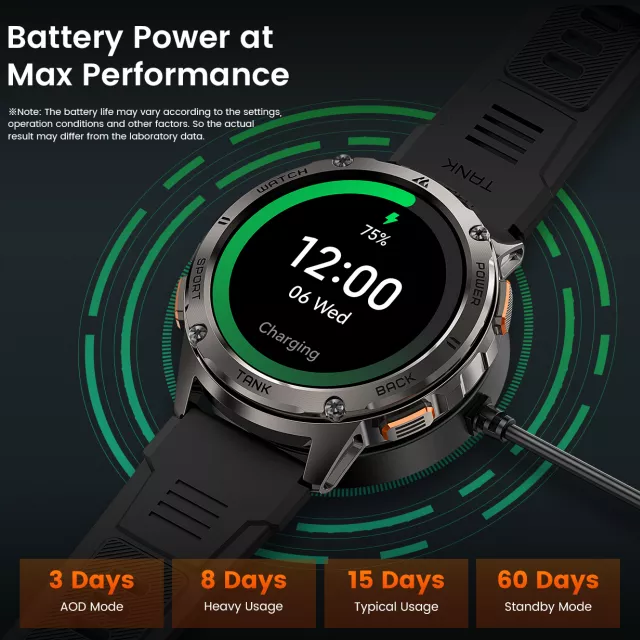 This smartwatch is best used during workouts, outdoor activities, daily routines, and even at night thanks to its smart sleep tracking. With professional waterproof protection up to 5ATM & IP69K, you can wear it confidently in heavy rain, during intense training sessions, or even while swimming. Its Always-On Display keeps your stats visible at all times, while the long-lasting battery offers up to 15 days of daily use.