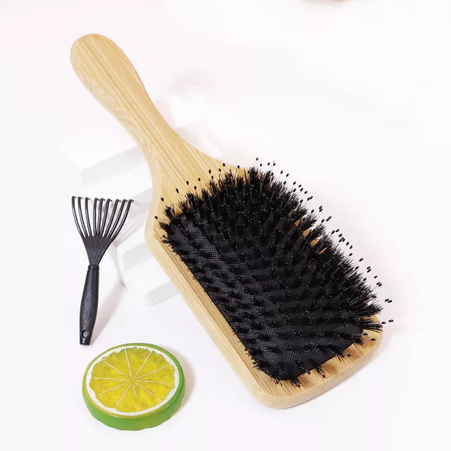 Discover a simple way to keep your real-hair wigs and natural hair looking smooth, shiny, and beautifully refreshed. This 2-piece Bristle Hairbrush and Small Rake set is designed to glide through strands gently, protect delicate fibers, and bring out a natural, healthy glow. Whether you’re styling at home or touching up on the go, this set delivers effortless control and comfort while caring for your hair the right way.
