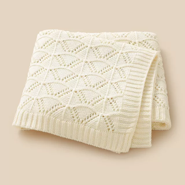 This beautiful blanket features a fashionable hollow-out knit design that enhances airflow while keeping your little one snug. Its solid plaid texture adds a timeless, minimalist charm that suits both boys and girls. Whether it’s a brisk morning walk, a peaceful nap, or tummy time, this versatile blanket is perfect for every season — keeping your baby warm in winter and cool in summer.