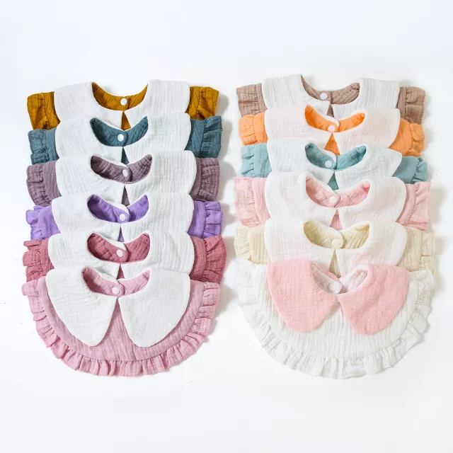Keep your little one clean, comfy, and cute with this soft ruffle baby bib made from breathable cotton gauze. Designed for newborns, infants, and toddlers up to 2 years old, this charming drool bib is gentle on delicate skin while offering excellent absorption during feeding time, teething, or daily play. Its sweet collar-style ruffle adds a touch of style to every outfit, making it perfect for both everyday wear and special moments.