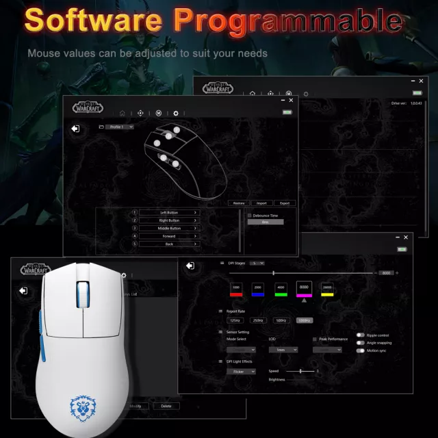 Take charge of every command with five programmable buttons. Assign tactical keybinds for faster reactions in games or set shortcuts that boost productivity at work. Paired with dedicated software that lets you fine-tune hotkeys, media controls, and DPI settings, you can tailor your mouse exactly the way you want it.