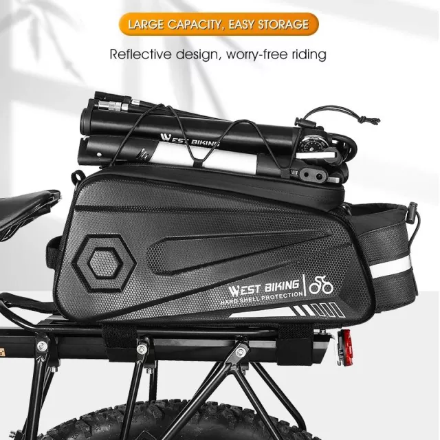 Take your cycling adventures to the next level with this spacious, waterproof bike trunk bag designed for mountain, road, and electric bikes. Built with a tough hard-shell exterior and durable fabrics, it keeps your essentials safe, organized, and protected from the elements. Whether you’re commuting, touring, or heading out for weekend rides, this trunk bag delivers reliable performance every time.
