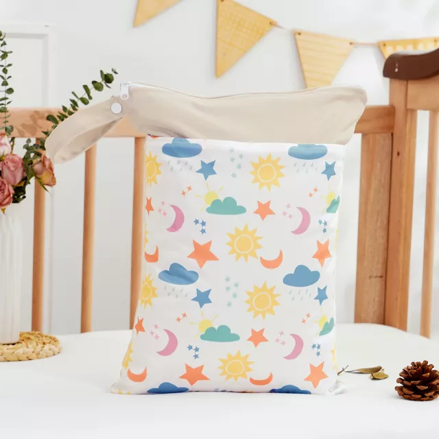 Sized between approximately 12 and 20 inches in length, this portable bag provides generous space without feeling bulky. Its unisex printed design pairs with a single-package style that’s easy to grab and carry. The waterproof interior safely holds diapers, wet clothes, swimsuits, or gym gear, while the dry side keeps fresh items neatly packed.