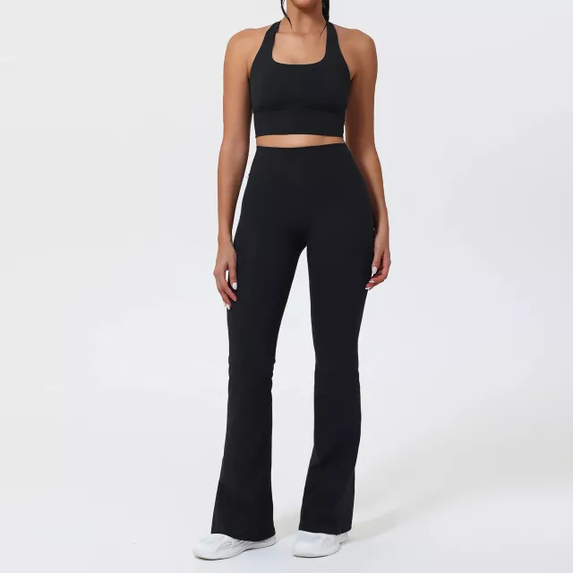 Step into your workouts feeling supported, smooth, and stylish with this women’s quick-dry sports set. Designed for yoga, gym training, running, Pilates, and everyday athleisure, this two-piece outfit delivers everything you need for movement that feels amazing. The set includes a shockproof sleeveless vest and flattering bell-bottom pants, crafted with a soft, stretchy blend of polyester and spandex for a body-hugging fit that moves with you.